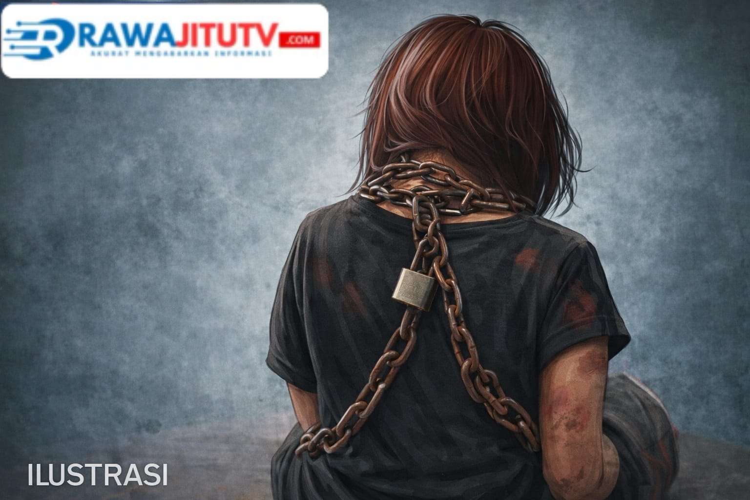 Seorang anak perempuan berusia sekitar 14 tahun ditemukan warga dalam kondisi memprihatinkan dengan rantai dan gembok yang masih terpasang di tubuhnya.