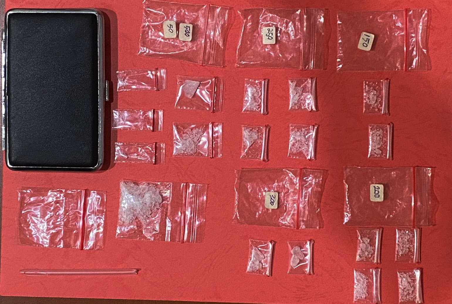 Lalu, plastik klip besar yang diberi label 300 dan didalamnya berisi 2 bungkus plastik klip kecil berisi narkoba jenis sabu, plastik klip besar yang diberi label 500, 50 yang didalamnya berisi 5 bungkus klip sedang berisi narkoba jenis sabu, serta 1 bungkus plastik klip besar berisi narkoba jenis sabu.